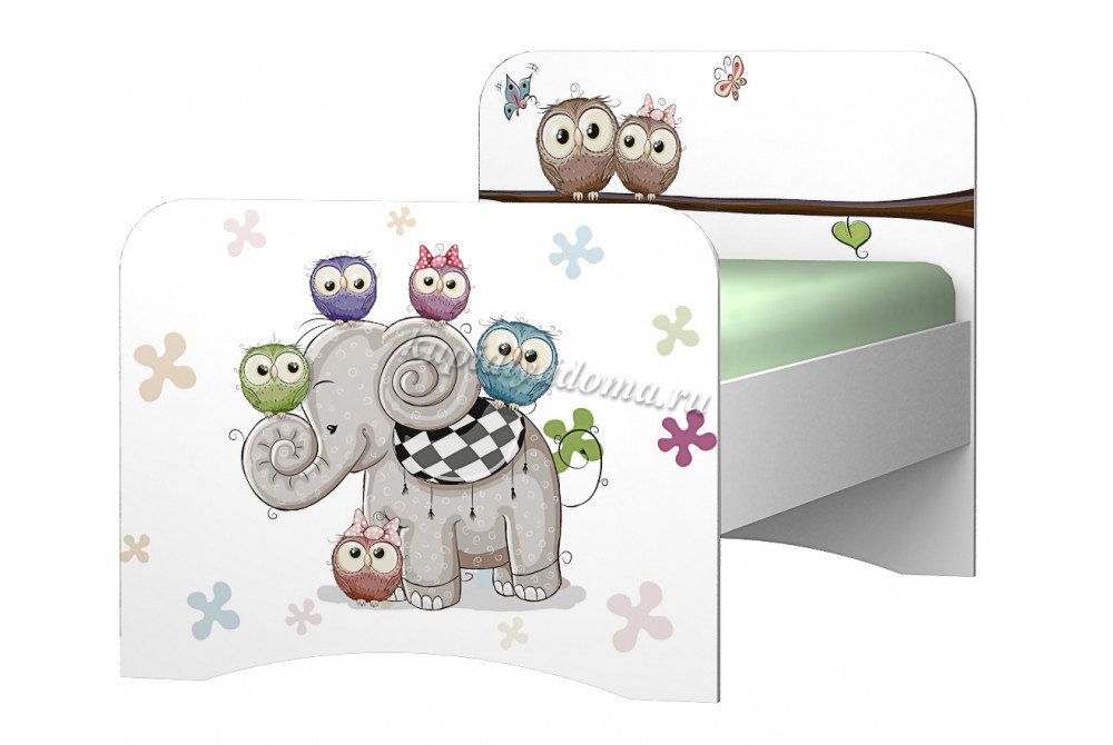Кровать Смарти-2 (Белый/Фотопечать Совята)