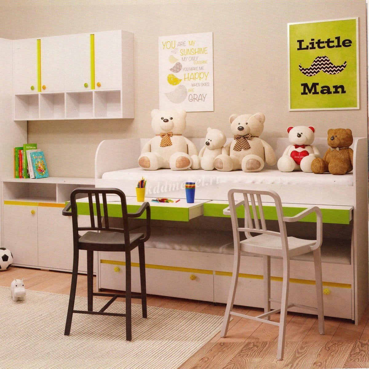 Описание Кровать-стол двухъярусная Мамба (Белый/Зеленый)