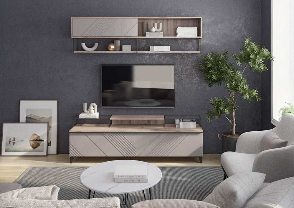 Новая модульная коллекция для гостиной Кенди сочетает в себе последние тенденции мебельного рынка: актуальное сочетание цветов, декорированные геометрическим рисунком фасады, продуманное наполнение и высокое качество каждого модуля.