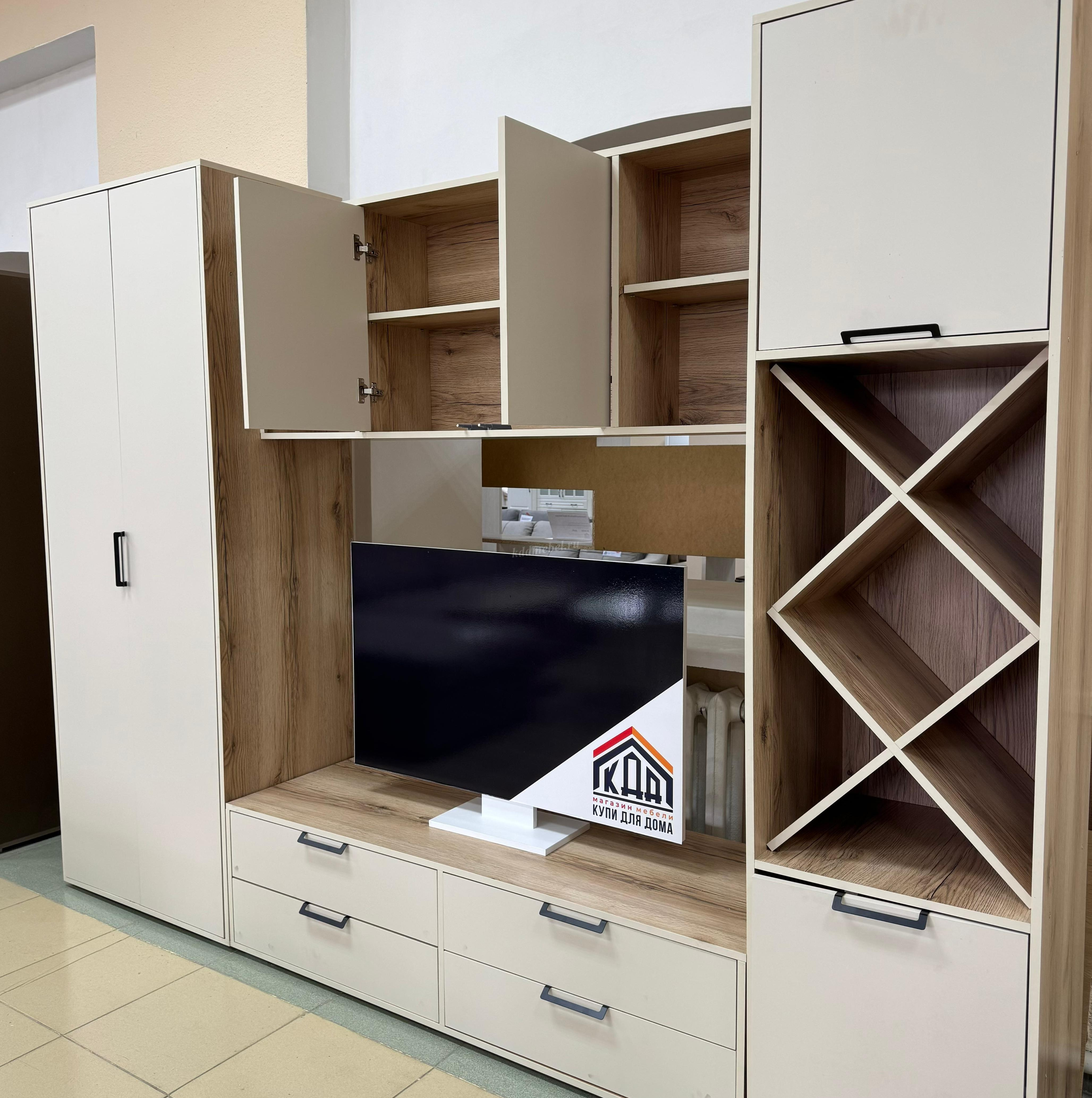 Описание Гостиная Оливия (Дуб делано светлый/Сатин)