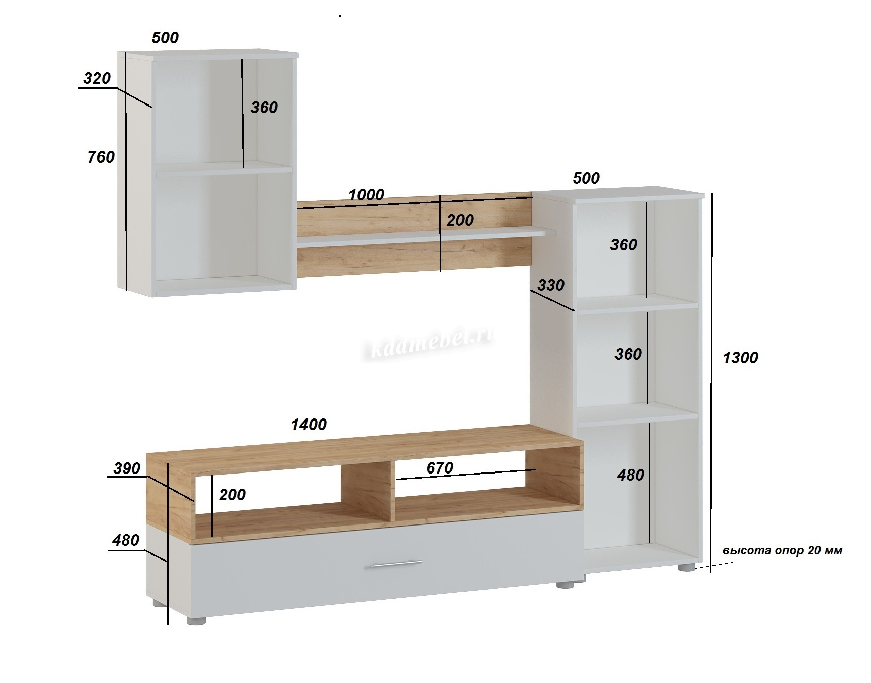 Описание Гостиная Оскар 1 (БелыйДуб золотой)
