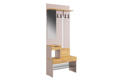 Изготовленная из прочного ЛДСП толщиной 16 мм, прихожая "Баско" гарантирует долговечность и надежность. Зеркало, встроенное в конструкцию, добавляет визуального пространства и позволяет быстро оценить свой внешний вид перед выходом. Крючки для одежды обеспечивают удобное место для размещения верхней одежды и аксессуаров, а выкатной ящик предоставляет дополнительное пространство для хранения мелочей. Сетчатая полка для обуви позволяет аккуратно разместить обувь, обеспечивая вентиляцию и легкий доступ.