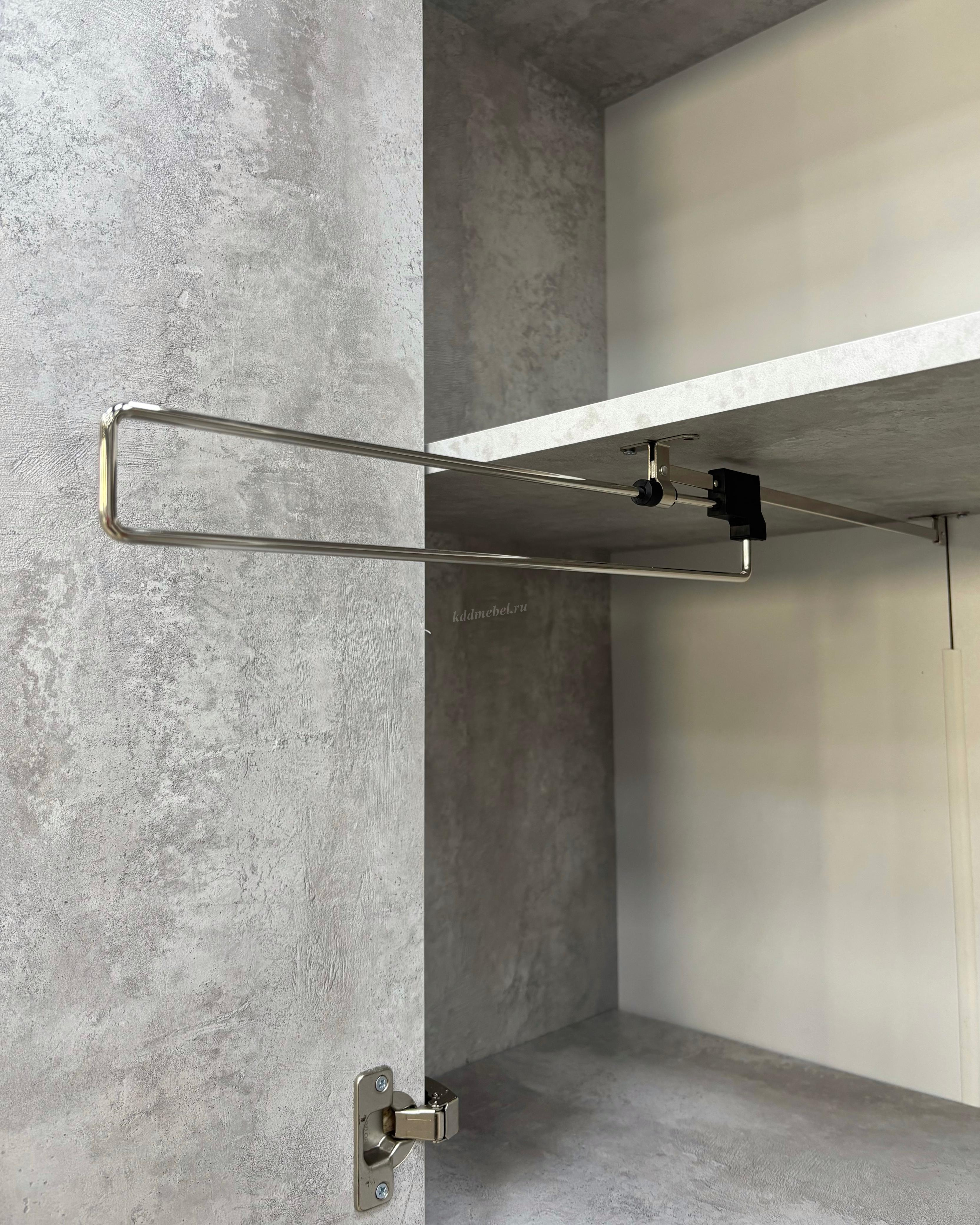 Здравствуйте! Слева, где открываются дверцы штанга или полки?